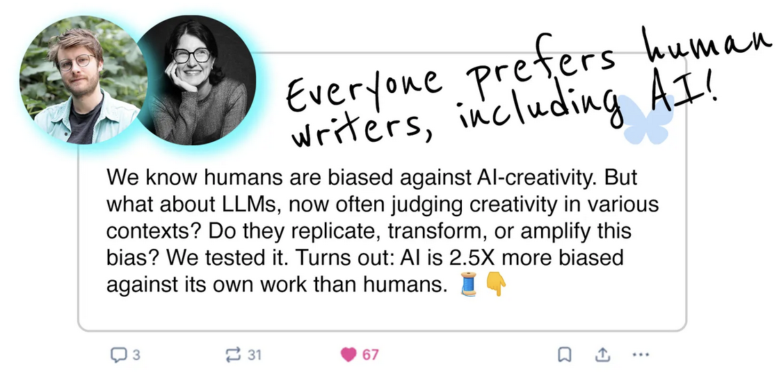 Meredith Martin, Professor of English and CDH Faculty Director, and Wouter Haverals, CDH Postdoctoral Research Associate, have published a pre-print revealing a striking pattern: both humans and AI systems show strong bias based on perceived authorship rather than actual content quality. The researchers built a dataset of stylistic rewrites inspired by Raymond Queneau’s “Exercises in Style,” then asked 556 people and a panel of LLMs a simple question: which of these two texts better captures a specific style—the original or the AI’s attempt? Crucially, they manipulated the labels, sometimes telling evaluators the AI-generated text was human-written and vice versa. They found that the same text received significantly different ratings depending solely on its attributed author, with AI models showing 2.5 times stronger bias than humans toward content labeled as human-authored. This suggests AI systems have absorbed cultural assumptions that devalue machine creativity. This research was supported by the Princeton Language and Intelligence (PLI) Seed Grant Program.